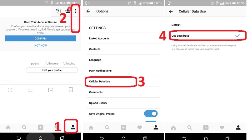 برای کاهش مصرف اینترنت در اینستا